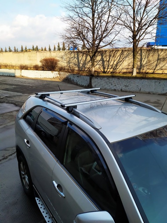 Авто багажник собирается и крепится на рейлинги специальными пластиковыми опорами с прорезиненными вставками в них, они служат для того, что бы багажник не царапал рейлинги и хорошо держался на них.