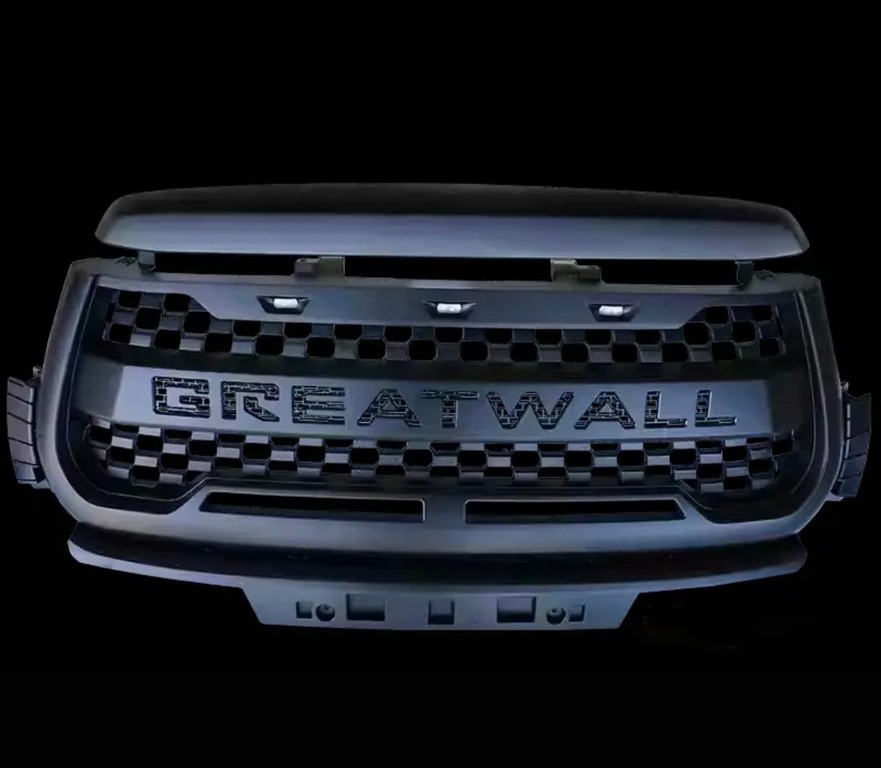 Решетка радиатора с накладкой на капот Great Wall Poer 2021-нв (чёрная)